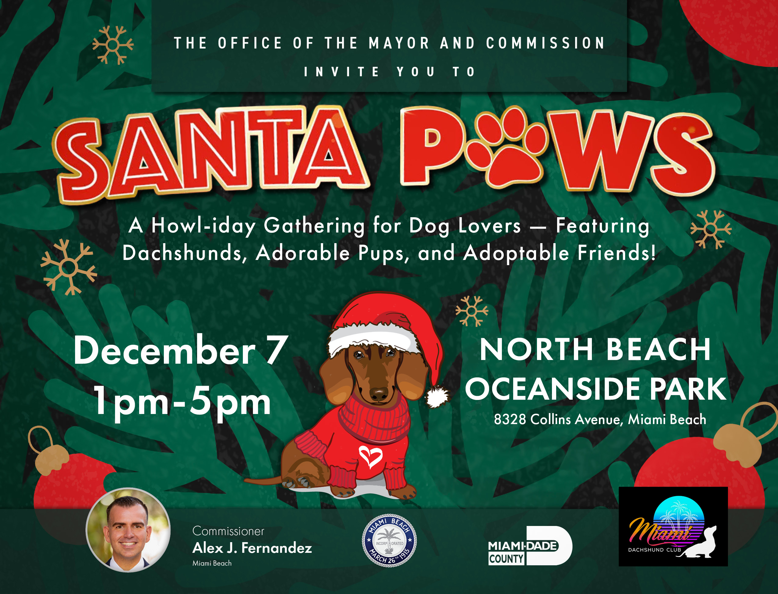 Santa Paws is coming to town this Sunday, Dec. 7 from 1 p.m. to 5 p.m. at North Beach Oceanside Park (8328 Collins Ave.).