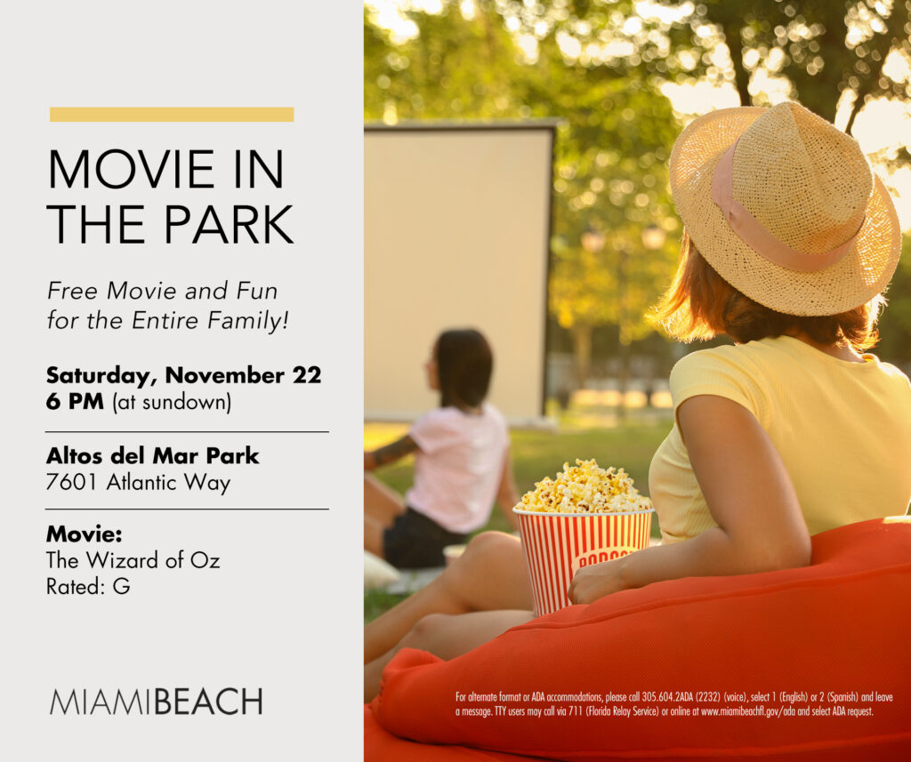 Bring your blankets and enjoy a fun night under the stars watching the box office hit, The Wizard of Oz. Call 305.673.7730 for more information.