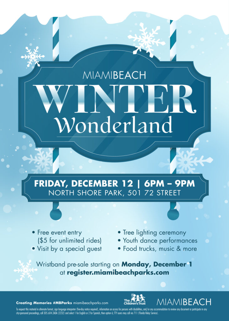 Pendant les fêtes, venez rencontrer le Père Noël et profitez de la cérémonie d'illumination du sapin, des manèges, des jeux, des spectacles de danse pour les enfants, des animations et bien plus encore. Entrée gratuite, code $5 pour un accès illimité aux manèges. Billets en vente à partir du 1er décembre.St en visitant register.miamibeachparks.com.