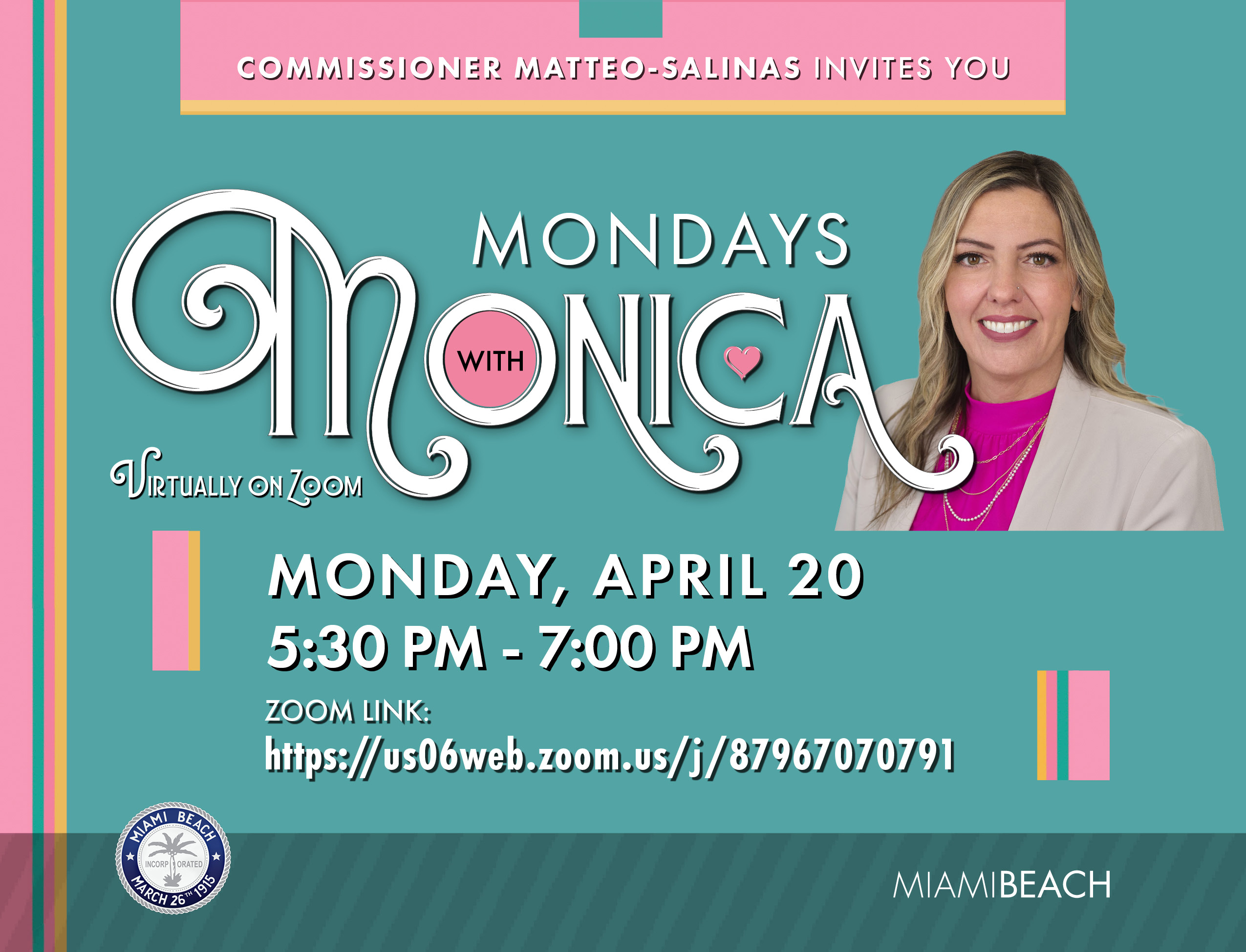 Commissioner Monica Matteo-Salinas invites you to Mondays with Monica, a Virtual Meeting